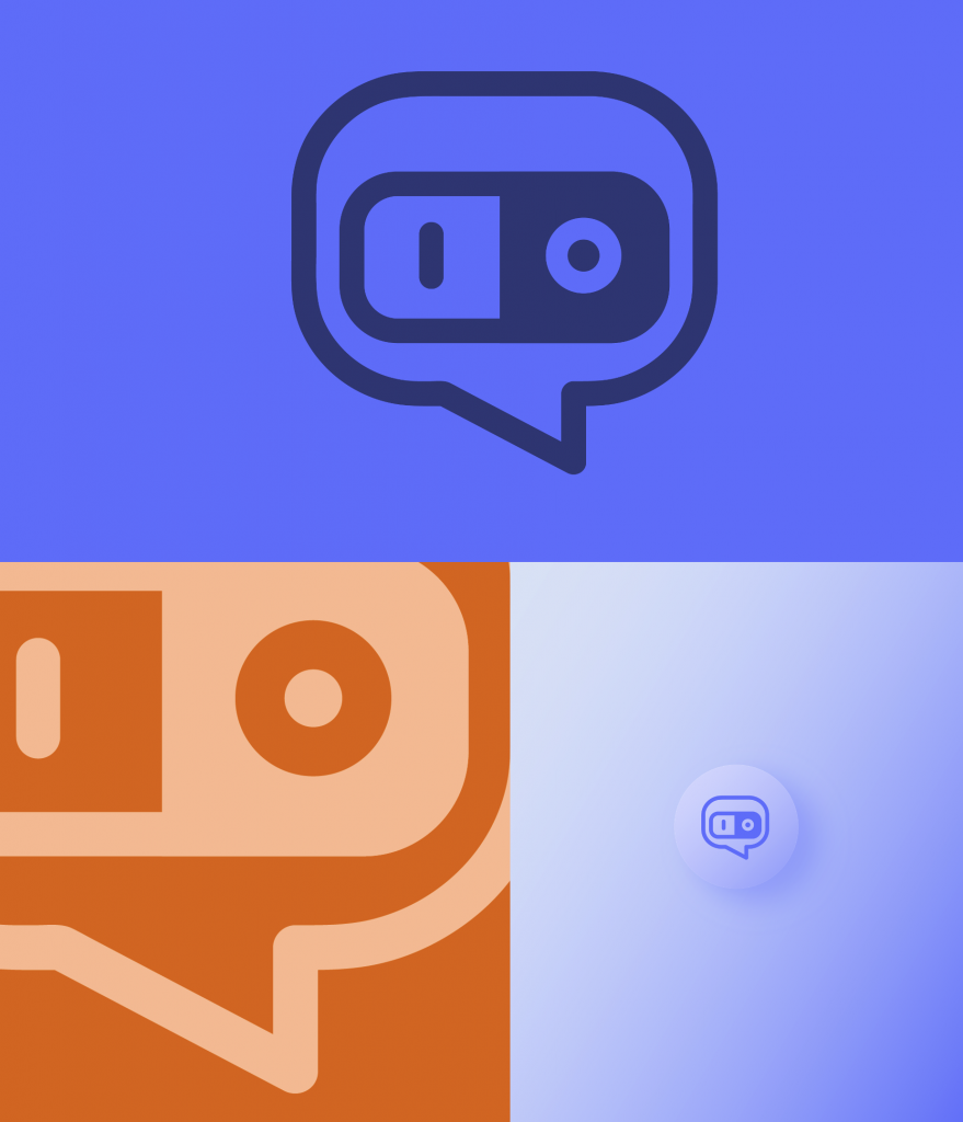 The icon is comprised of a stylized power switch containing the „i“ and „o“ letters as well as a speech bubble referencing the communications aspect.