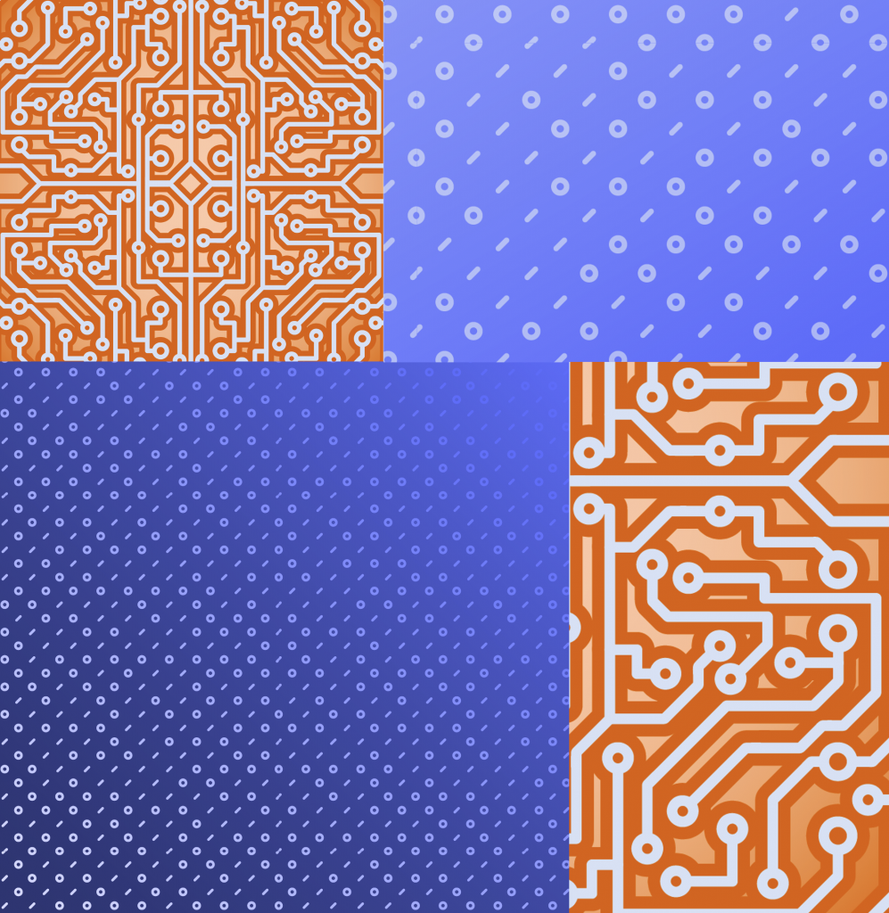 The patterns structures are inspired by the patterns of binary code and electronic circuits. These can be used as backgrounds or borders to add interest to empty areas.